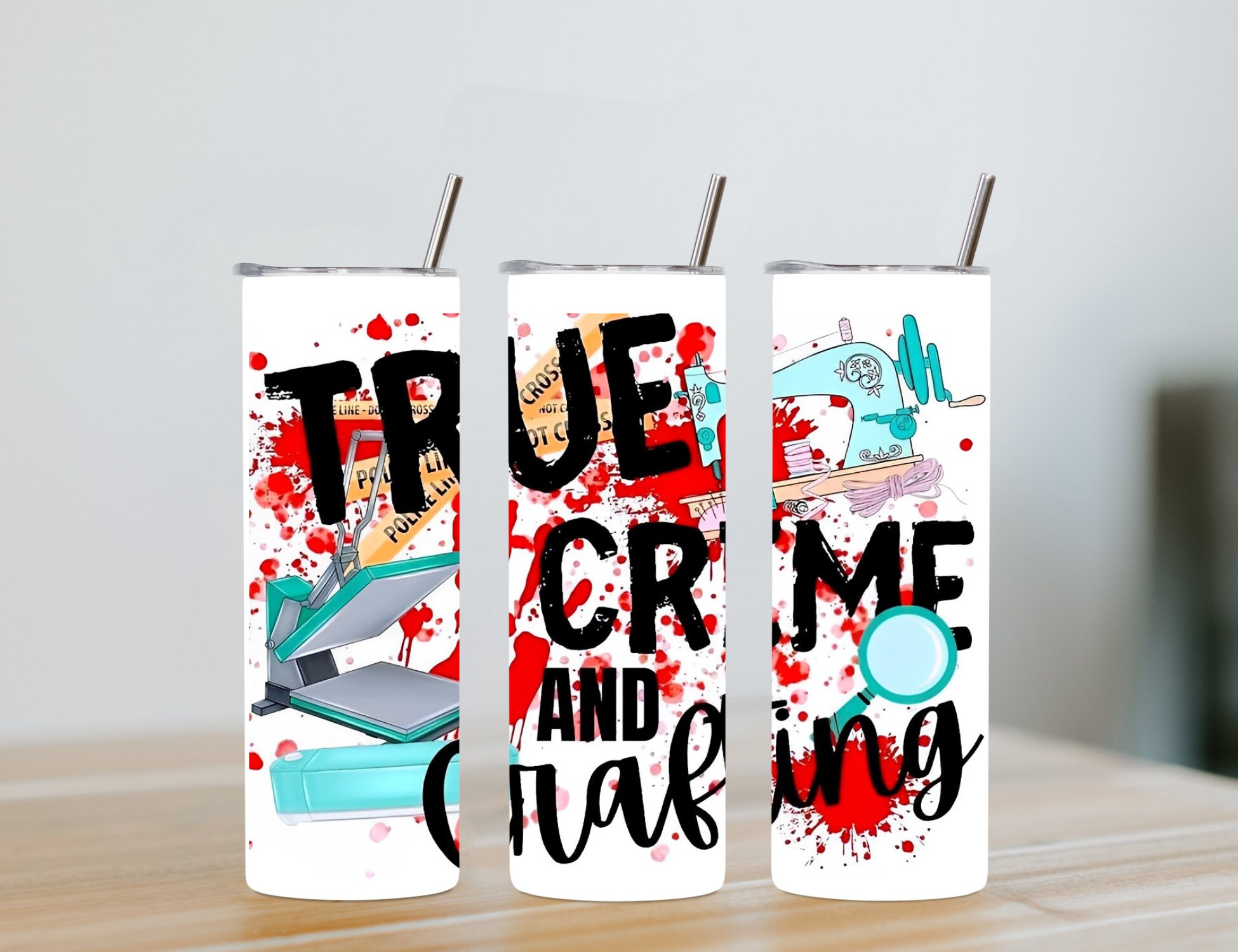 Looking for the perfect blend of intrigue and creativity in your beverage holder? The True Crime and Crafting Tumbler from HappyGirl Kreationz is crafted using a sublimation process, embedding imagery onto the tumbler to ensure a durable, vibrant look that resists fading, chipping, or scratching. Unlike other tumblers, our designs feature no stickers, lifting, or peeling images – just long-lasting quality. Some designs even boast a glitter or sparkle effect, adding that extra touch of flair. Embrace your love for true crime and crafting with a tumbler that's as resilient and stylish as you are.