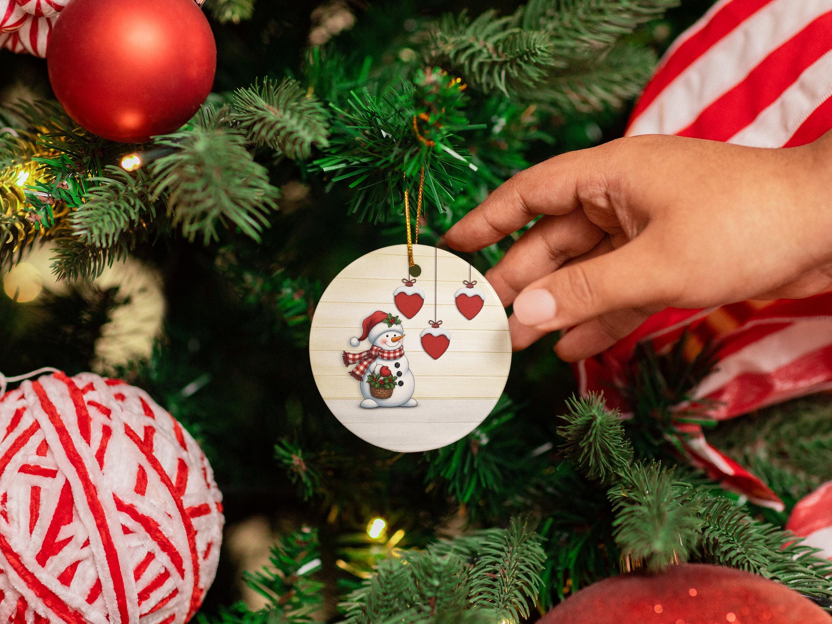 Heartfelt Design: The cheerful snowman and dangling hearts create a sweet and loving visual representation of the people who matter most.
