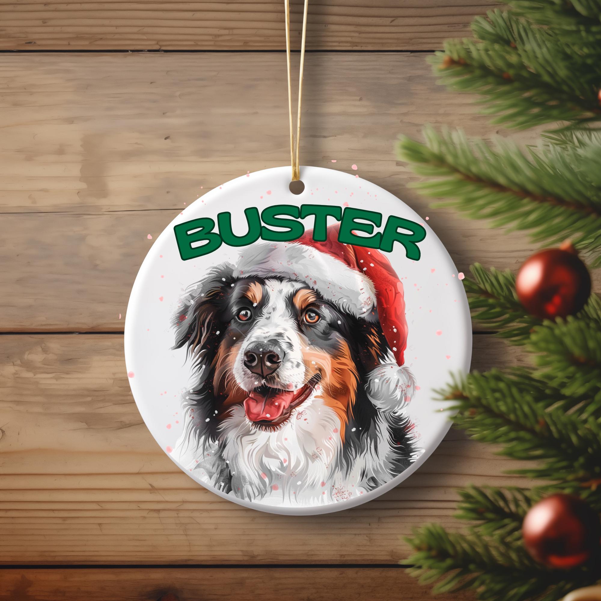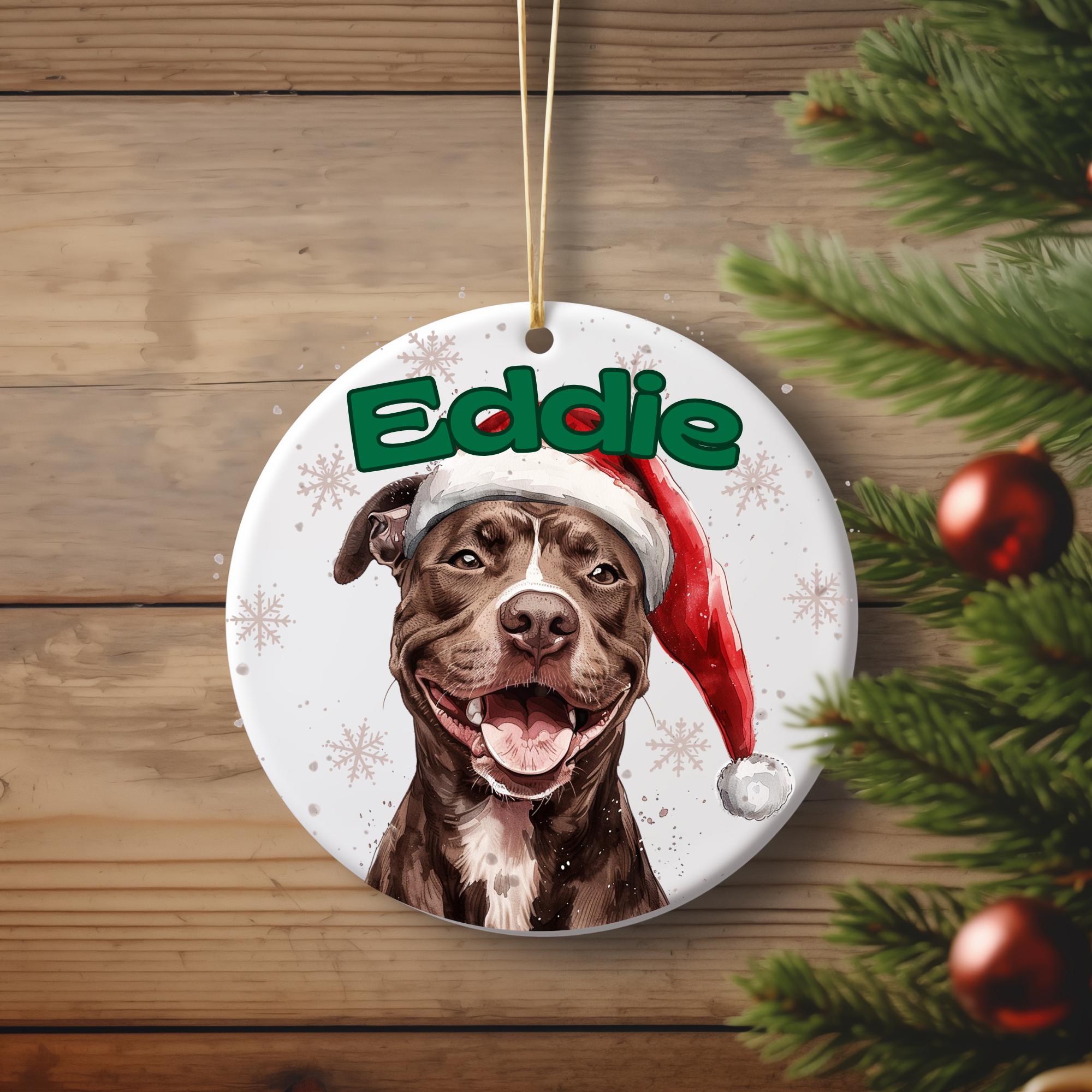 Celebrate your furry best friend this holiday season with an ornament as unique and joyful as they are! This adorable custom ornament features a charming dog wearing a festive Santa hat, ready to bring smiles to your Christmas tree. Personalized with your pet's name, it's the perfect way to include them in the holiday magic or commemorate a cherished companion.