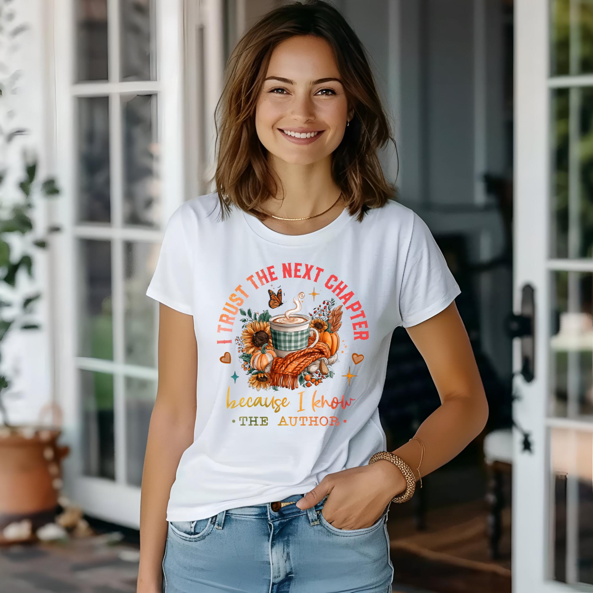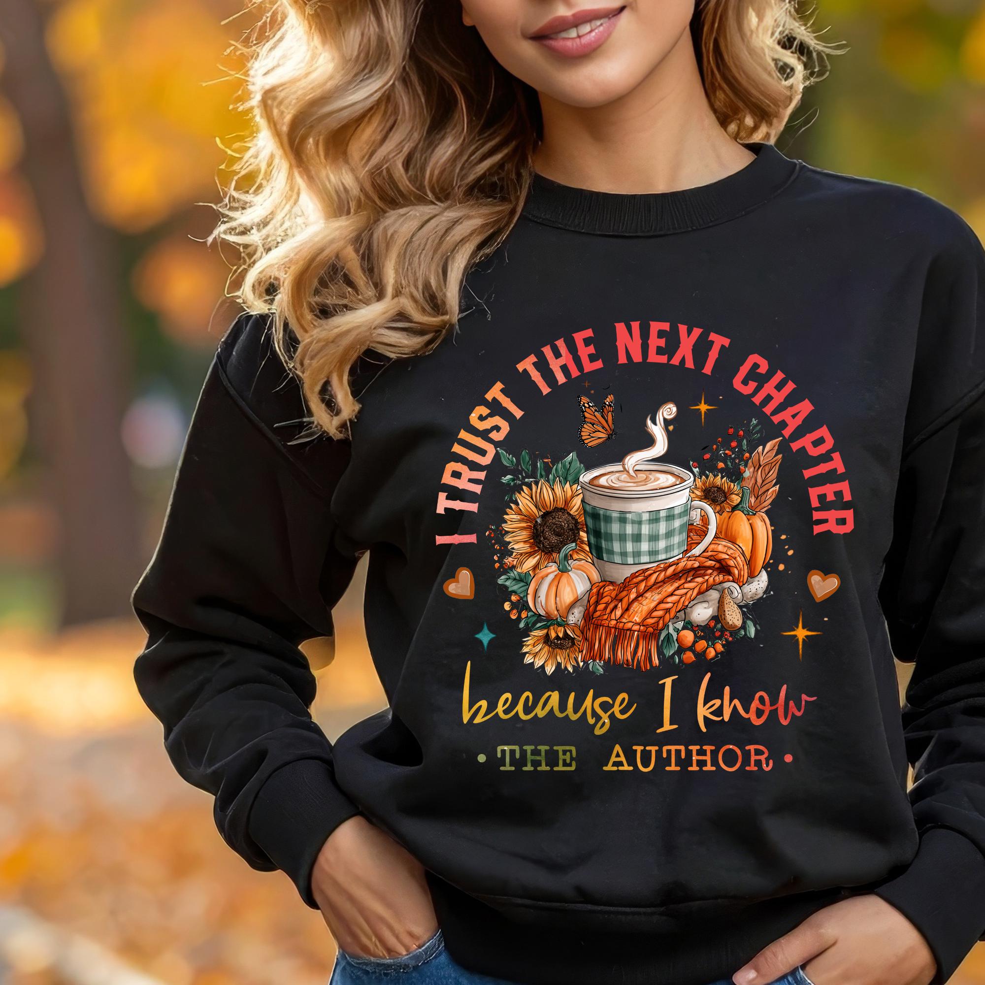 Embrace faith and cozy fall vibes! This “I Trust the Next Chapter Because I Know the Author” shirt, sweatshirt, or hoodie blends inspiration, comfort, and style. Featuring a warm fall coffee scene with pumpkins and sunflowers, it’s the perfect Christian gift for women who trust God’s plan — ideal for church, Bible study, or autumn days. 🍂☕