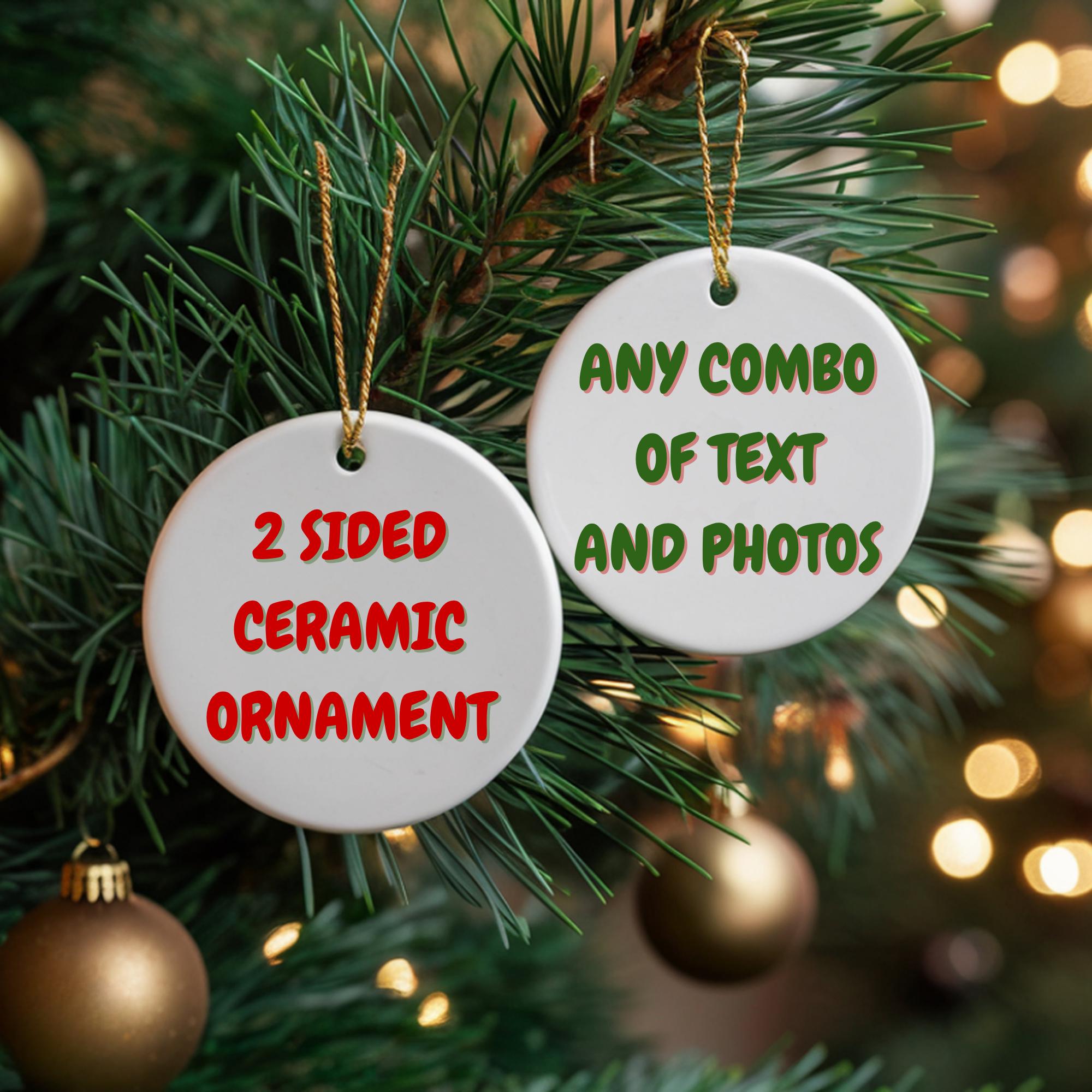 Make your tree extra special this holiday season with a custom ceramic ornament designed completely by you! Add your own photos, names, text, or artwork — perfect for family memories, pets, memorials, weddings, or any special moment you want to celebrate.